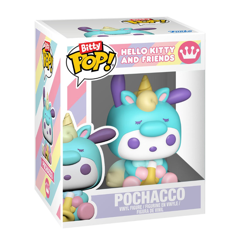 Expand your Hello Kitty and Friends Bitty Pop! collection with this 4-pack featuring My Melody, Pochacco, Badtz-Maru, and a random Bitty Pop! figure. Each Bitty Pop! mini-figure come packaged in hard acrylic cases with detachable bottom lids. The detachable bottom lids double as acrylic bases, to which the Bitty Pop! mini-figures are adhered. Sort and arrange your Bitty Pop! collectibles with the included display case! Acrylic display cases are stackable and hold 4x Bitty Pop! mini-figures. This Sanrio Hello Kitty and Friends My Melody Funko Bitty Pop! Mini-Figure 4-Pack comes packaged in a window display box. For ages 3 years and up.